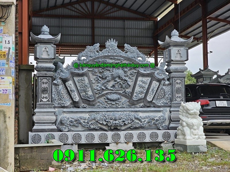 033+ giá cuốn thư đá đẹp + bình phong nhà mồ, còn được gọi bình phong đá hoặc tắc môn đá, mang một ý nghĩa tâm linh sâu sắc, thường được sử dụng để tiết chế phong thủy.