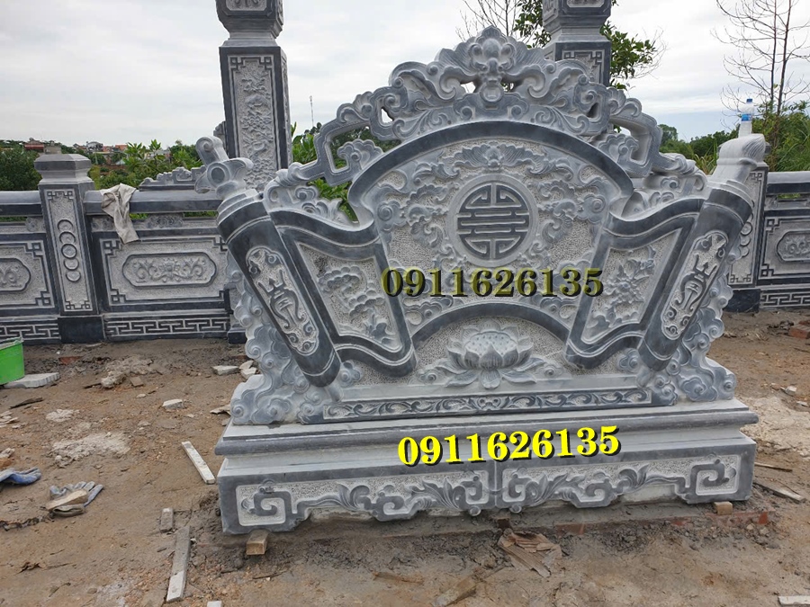 Bình phong đá (cuốn thư đá) Lư đỉnh hương, đèn, Bàn lễ đá ,trước cổng khu lăng mộ nghĩa trang
