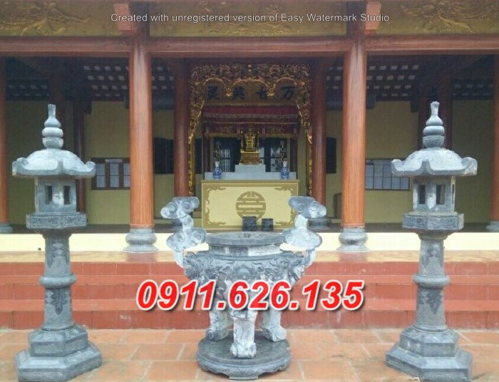 Đèn thờ đá thường đặt trên cột hoặc hai bên bàn thờ.