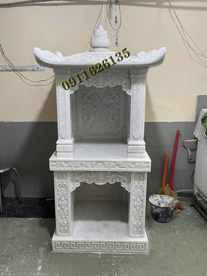 - Đá cẩm thạch trắng: Màu sắc tinh khiết, thường được dùng cho các am thờ trong nhà hoặc các công trình yêu cầu thẩm mỹ cao.