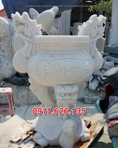 - Bát hương đá trắng: Với vẻ ngoài sáng bóng, bát hương đá trắng tạo sự sang trọng và thanh tịnh cho không gian thờ cúng.