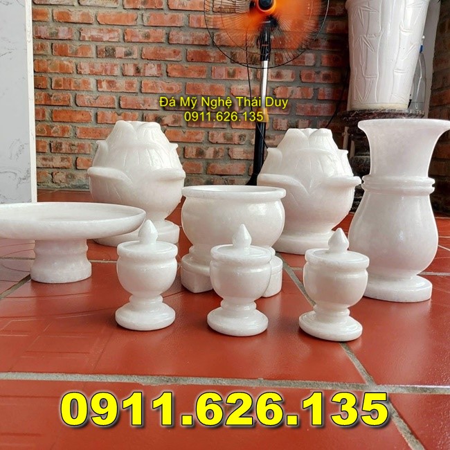- Bát hương đá trắng: Với vẻ ngoài sáng bóng, bát hương đá trắng tạo sự sang trọng và thanh tịnh cho không gian thờ cúng.