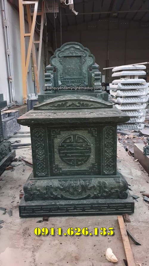 Nên chọn các mẫu có hoa văn chạm khắc nhẹ nhàng để giữ nét cổ kính và trang nghiêm. Đá xanh đen hoặc đá vàng nhạt là lựa chọn phổ biến.