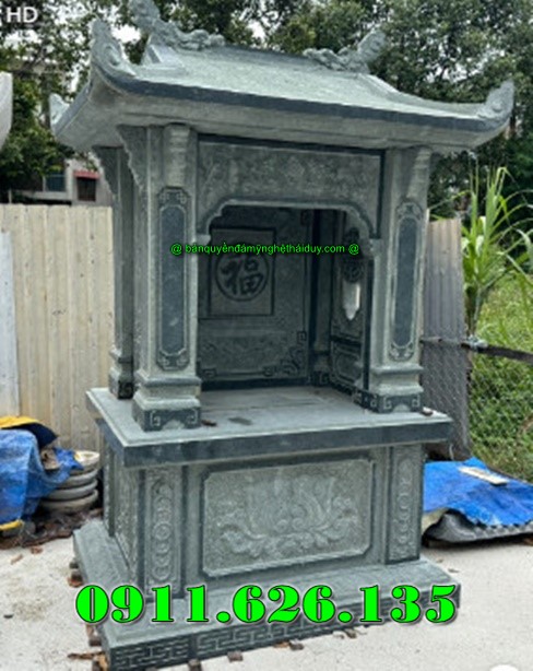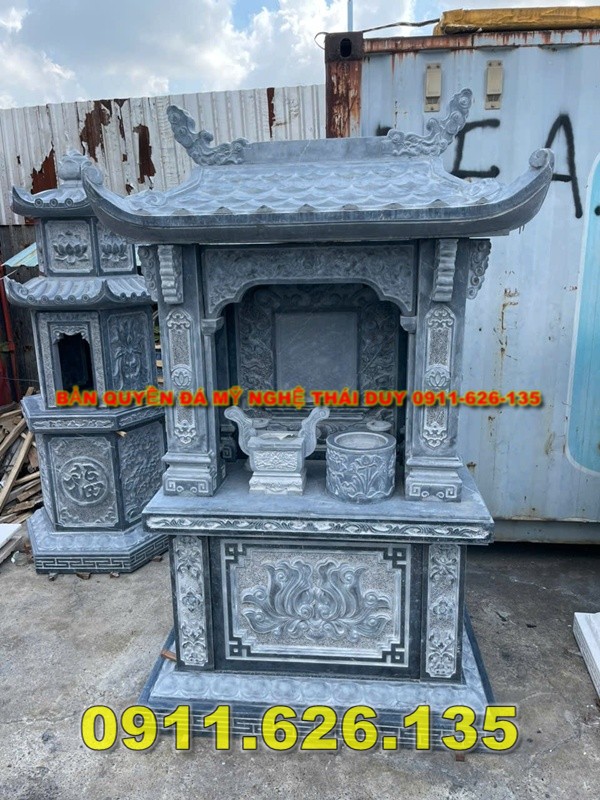 Am thờ tro cốt bằng đá là một công trình kiến trúc tâm linh nhỏ được làm từ đá tự nhiên nguyên khối, dùng để bảo quản, an vị và thờ cúng hũ tro cốt của người đã khuất sau khi hỏa táng, thường đặt tại sân vườn gia đình, khu nghĩa trang, đền chùa hoặc nơi trang nghiêm trong khuôn viên thờ tự. “Am” trong tiếng Việt chỉ ngôi nhà nhỏ để thờ cúng, còn “tro cốt” là phần còn lại sau khi hỏa táng người mất, vì vậy am thờ tro cốt đá vừa là nơi trang trọng để tưởng nhớ, thể hiện lòng hiếu kính, vừa là chốn an nghỉ thanh tịnh cho linh hồn người khuất bóng. Đây không chỉ là biểu tượng của lòng thành kính với tổ tiên và người đã khuất, mà còn mang ý nghĩa phong thủy sâu sắc, giúp cân bằng năng lượng, đem lại sự bình an cho gia đình và thể hiện truyền thống văn hóa “uống nước nhớ nguồn” của người Việt. Các am thờ này thường được thiết kế với nhiều kích thước khác nhau phù hợp nhu cầu và không gian, ví dụ như chiều rộng khoảng 40–100 cm, chiều cao khoảng 80–167 cm và chiều sâu khoảng 40–90 cm tùy theo số lượng hũ tro cốt cần an vị và phong thủy đặt am. Chất liệu đá để làm am thờ tro cốt rất đa dạng với các loại đá tự nhiên như đá xanh rêu Thanh Hóa, đá xanh ngọc Ninh Bình, đá trắng (cẩm thạch), đá vàng, đá granite (hoa cương)… mang độ bền cao, chịu được thời tiết, đồng thời dễ chạm khắc hoa văn. Trên thân am thường có các họa tiết hoa văn mang ý nghĩa tâm linh như hoa sen, rồng phượng, mây trời, chữ Hán “Phúc – Thọ – Tâm” hay hình tượng Phật, Bồ Tát, tạo nên vẻ trang nghiêm và truyền cảm giá trị văn hóa sâu sắc nhất cho không gian thờ cúng. Giá của một am thờ tro cốt bằng đá tùy thuộc vào kích thước, chất liệu và độ tinh xảo của hoa văn chạm khắc, thường dao động từ vài chục triệu đồng đến hơn một trăm triệu đồng cho các mẫu lớn và cầu kỳ.