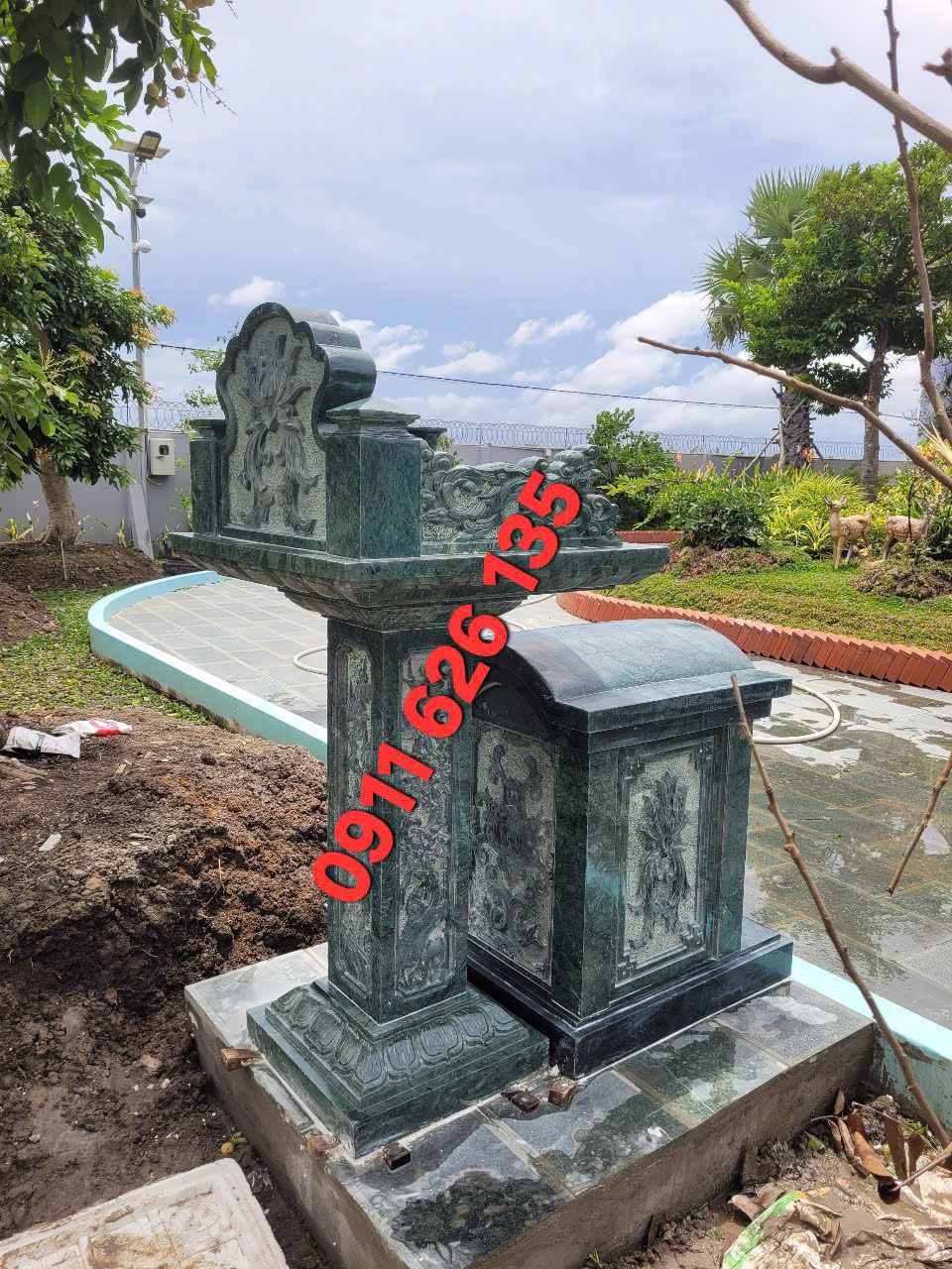 - Loại đá: Đá xanh, đá trắng, đá ngọc, hay đá hoa cương.