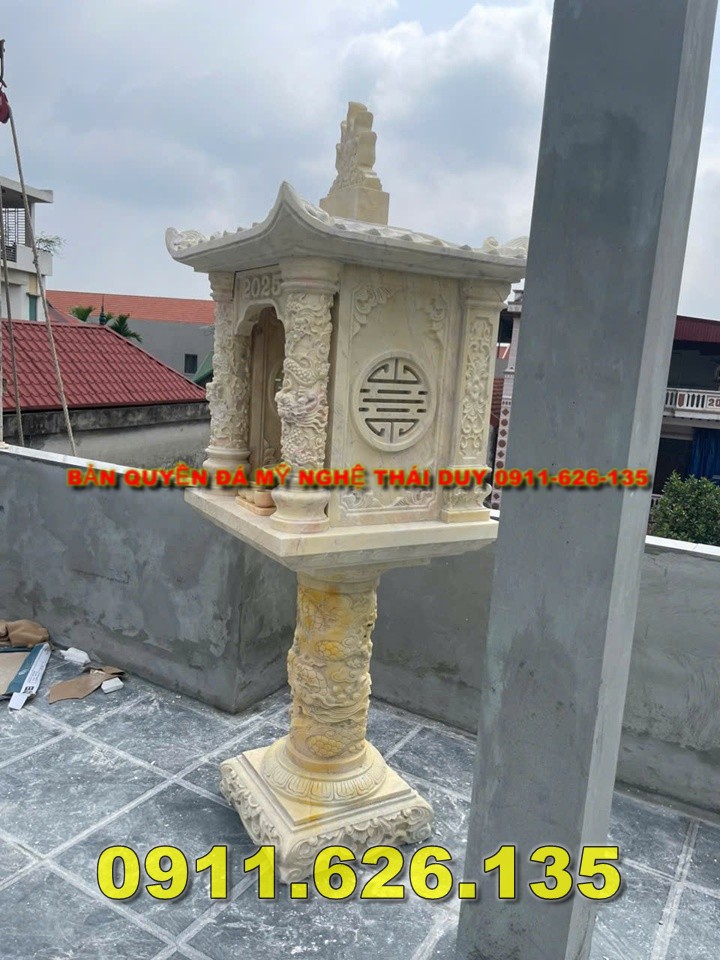 | 147 x 107 x 107 cm | Có mái 2 tầng, cột chạm rồng, đế sen – thường thờ Thần Linh |