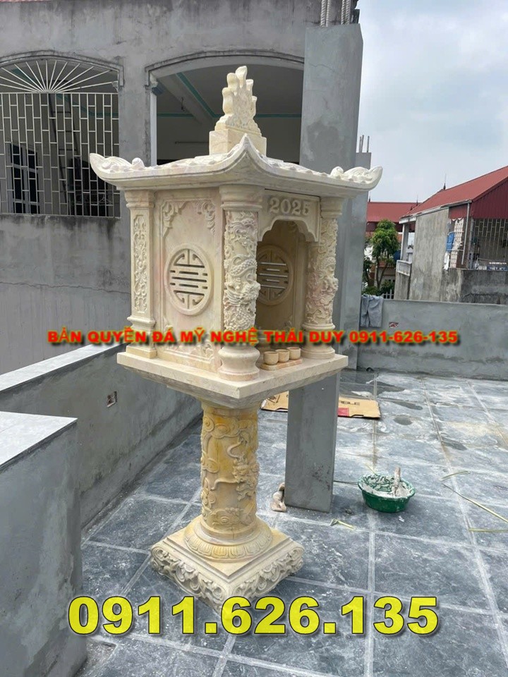 | 147 x 107 x 107 cm | Có mái 2 tầng, cột chạm rồng, đế sen – thường thờ Thần Linh |