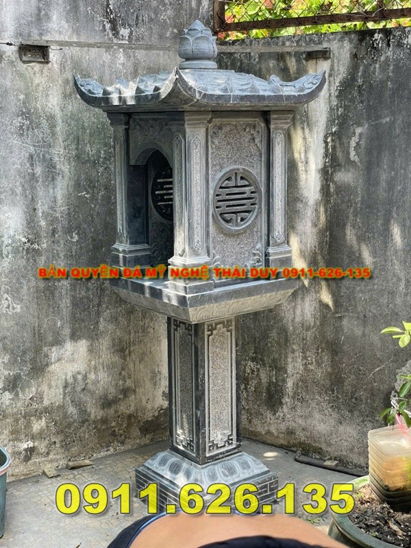 | 147 x 107 x 107 cm | Có mái 2 tầng, cột chạm rồng, đế sen – thường thờ Thần Linh |