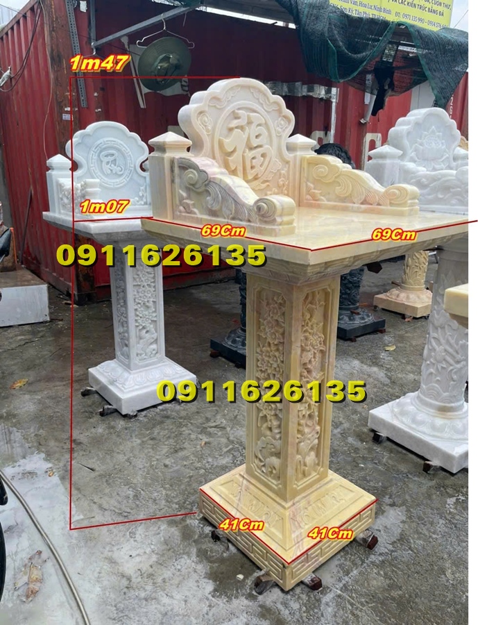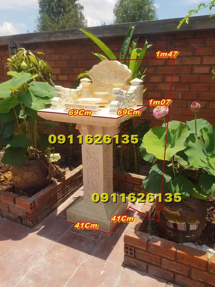 Cấu tạo: Gồm mặt bàn (đặt lễ vật), chân cột hoặc bệ đỡ, nhiều mẫu có chạm khắc hoa văn tứ linh, hoa sen, mây trời,…