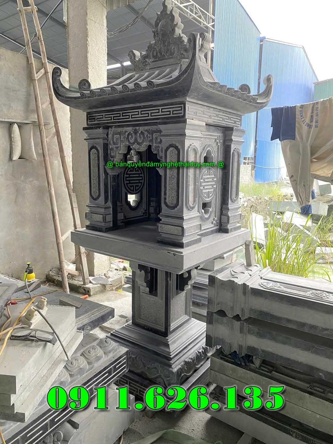 | 147 x 107 x 107 cm | Có mái 2 tầng, cột chạm rồng, đế sen – thường thờ Thần Linh |