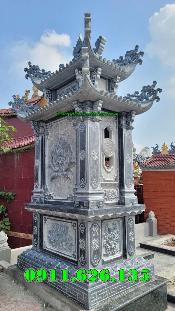 ✅ Miếu đá tròn 2 tầng kiểu Phật giáo – thường dùng trong chùa, tịnh thất