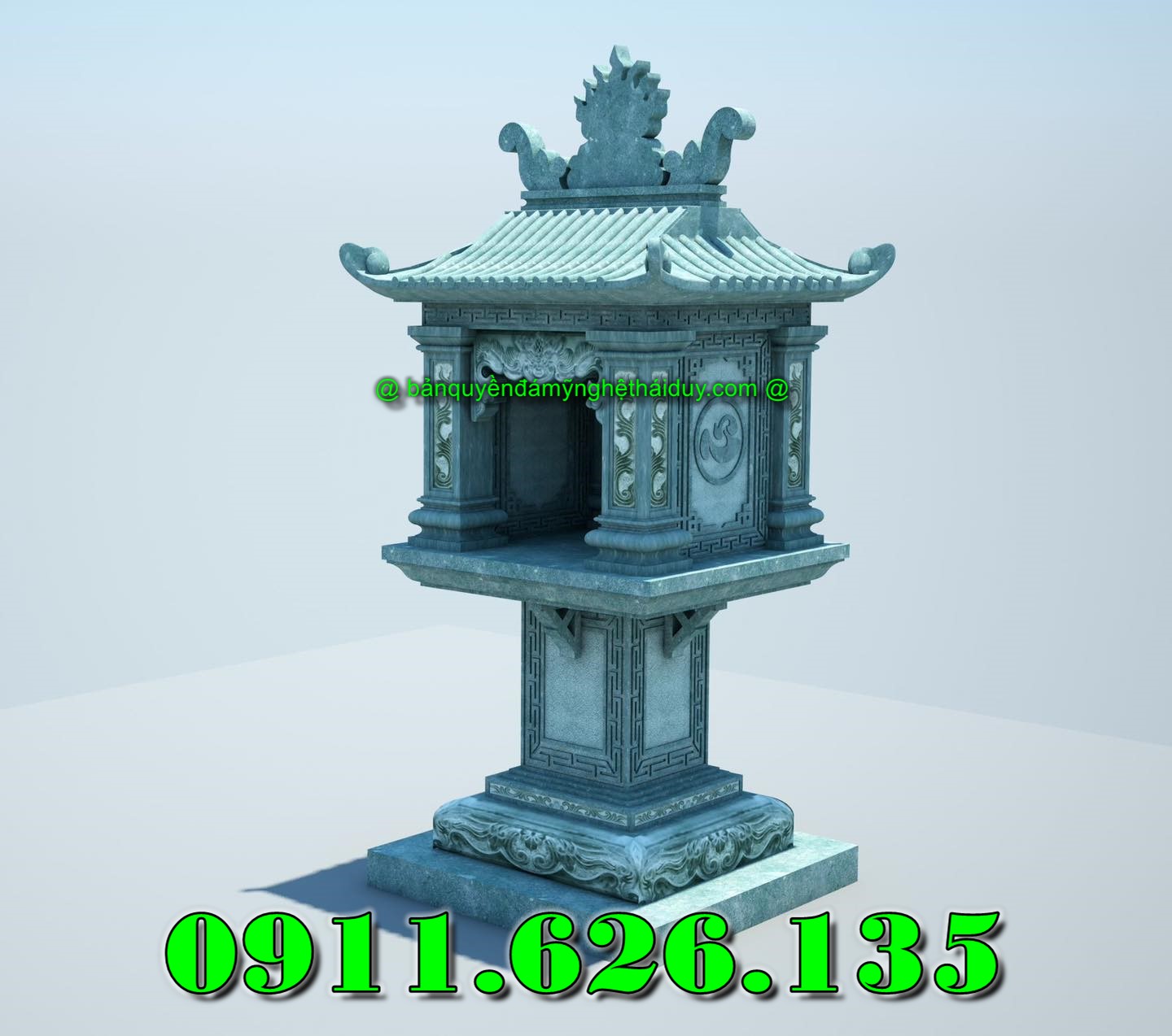 | 147 x 107 x 107 cm | Có mái 2 tầng, cột chạm rồng, đế sen – thường thờ Thần Linh |