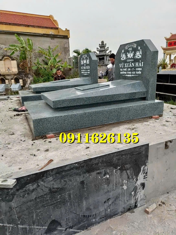- Mộ đá hai mái kích thước 81×127 (cm) , 89×133 (cm), 89×147 (cm), , 107x147cm , 107×167 (cm), 117×172 (cm), 127×217 (cm), 127×255 (cm), 133×255 (cm), 133×275 (cm), 147×275 (cm)…