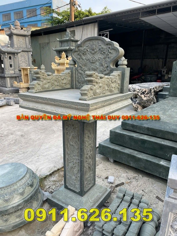 Cấu tạo: Gồm mặt bàn (đặt lễ vật), chân cột hoặc bệ đỡ, nhiều mẫu có chạm khắc hoa văn tứ linh, hoa sen, mây trời,…