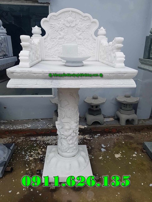 Cấu tạo: Gồm mặt bàn (đặt lễ vật), chân cột hoặc bệ đỡ, nhiều mẫu có chạm khắc hoa văn tứ linh, hoa sen, mây trời,…