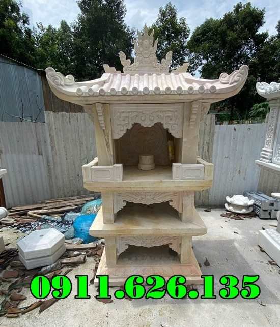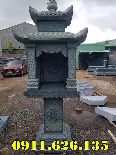 | 147 x 107 x 107 cm | Có mái 2 tầng, cột chạm rồng, đế sen – thường thờ Thần Linh |