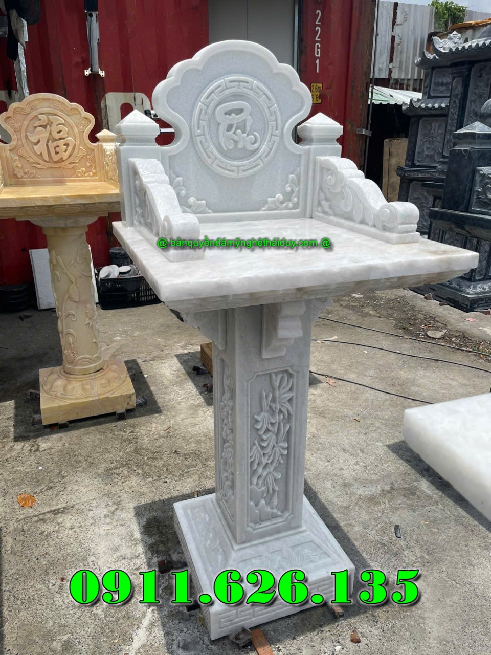 Cấu tạo: Gồm mặt bàn (đặt lễ vật), chân cột hoặc bệ đỡ, nhiều mẫu có chạm khắc hoa văn tứ linh, hoa sen, mây trời,…