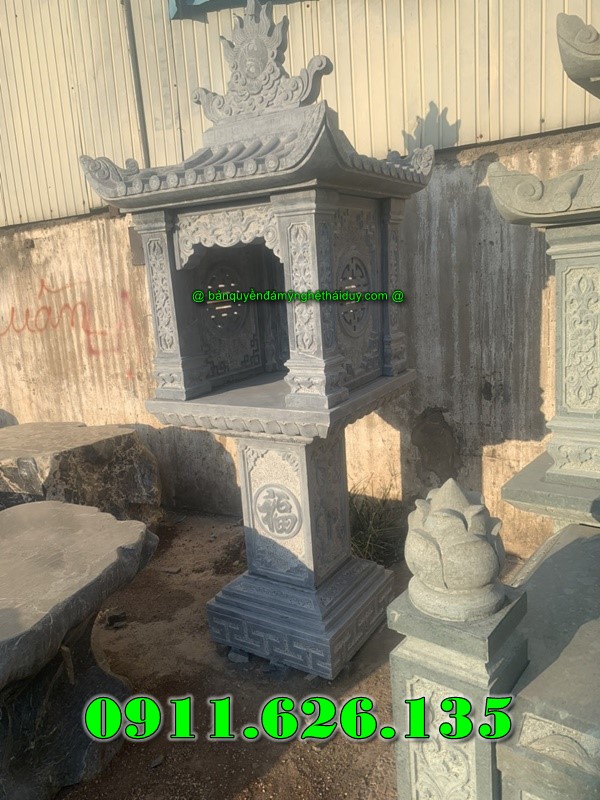 | 147 x 107 x 107 cm | Có mái 2 tầng, cột chạm rồng, đế sen – thường thờ Thần Linh |
