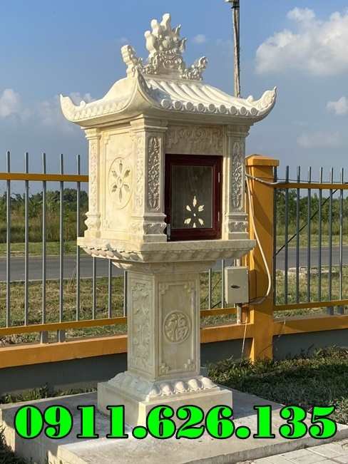 | 147 x 107 x 107 cm | Có mái 2 tầng, cột chạm rồng, đế sen – thường thờ Thần Linh |