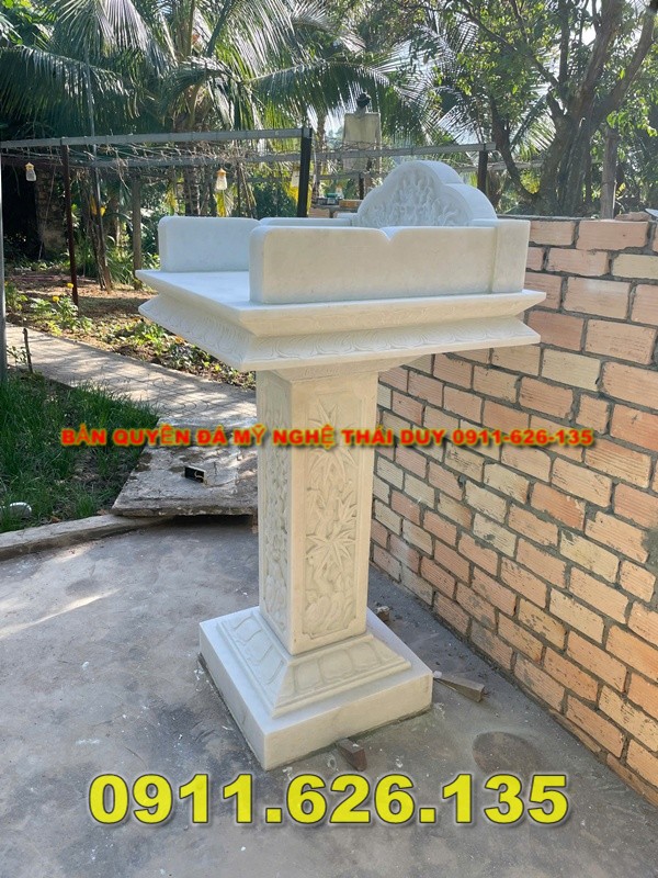 Cấu tạo: Gồm mặt bàn (đặt lễ vật), chân cột hoặc bệ đỡ, nhiều mẫu có chạm khắc hoa văn tứ linh, hoa sen, mây trời,…
