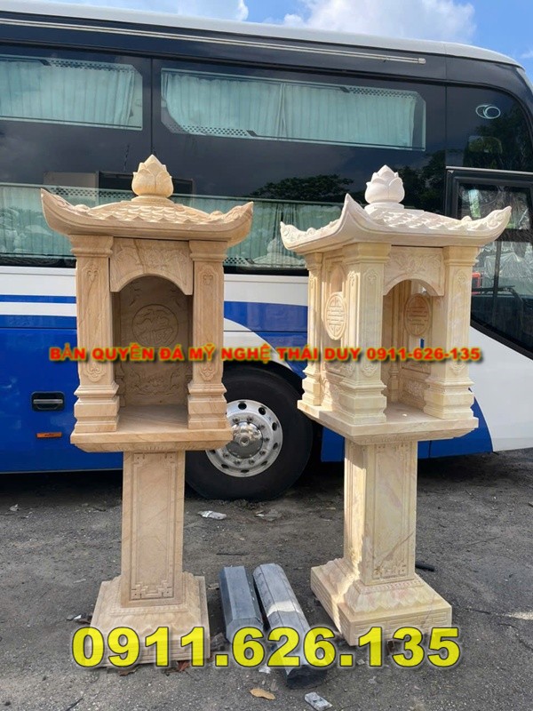 | 147 x 107 x 107 cm | Có mái 2 tầng, cột chạm rồng, đế sen – thường thờ Thần Linh |