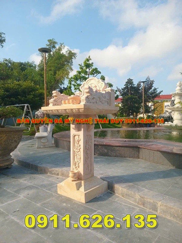 | Cấu tạo | Gồm trụ đá (hoặc trụ gạch), phía trên là mặt bàn vuông (thường khắc chữ “Thiên” hoặc hoa văn mây trời) |