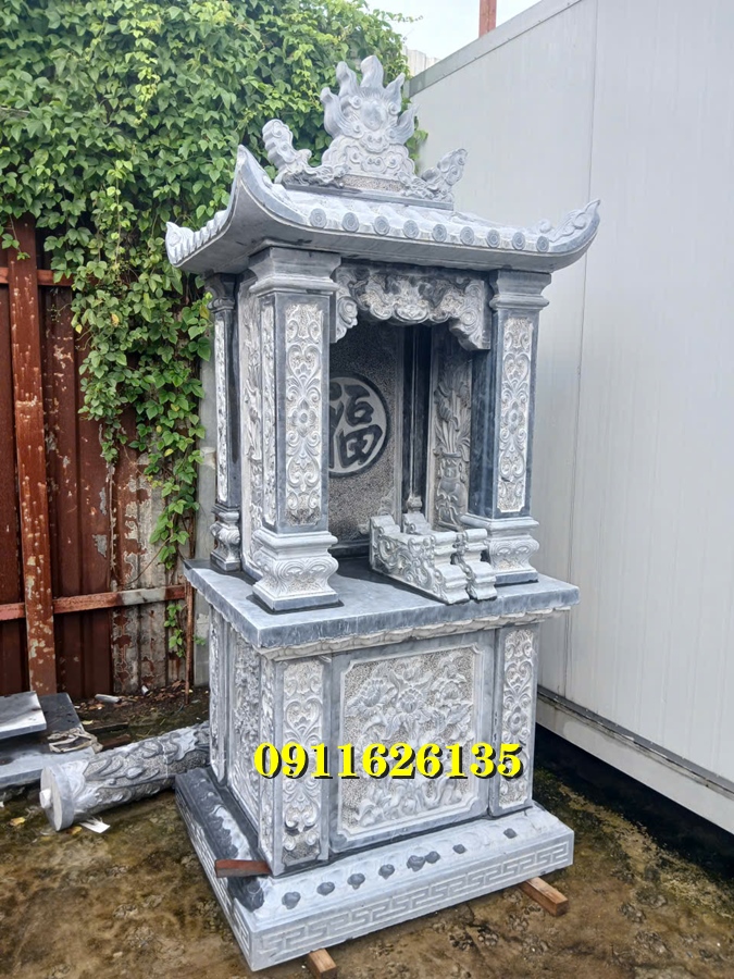 | 147 x 107 x 107 cm | Có mái 2 tầng, cột chạm rồng, đế sen – thường thờ Thần Linh |