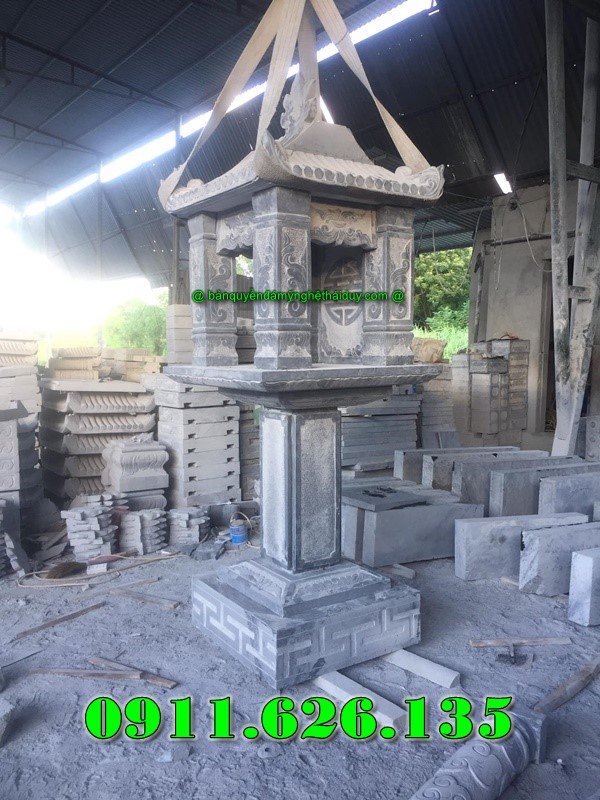 | 147 x 107 x 107 cm | Có mái 2 tầng, cột chạm rồng, đế sen – thường thờ Thần Linh |