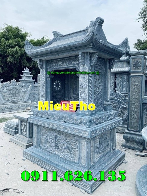 | Kết cấu | Gồm nền – thân miếu – mái miếu (1 mái, 2 mái, 3 mái), có thể có cột đá chạm rồng, lư hương… |
