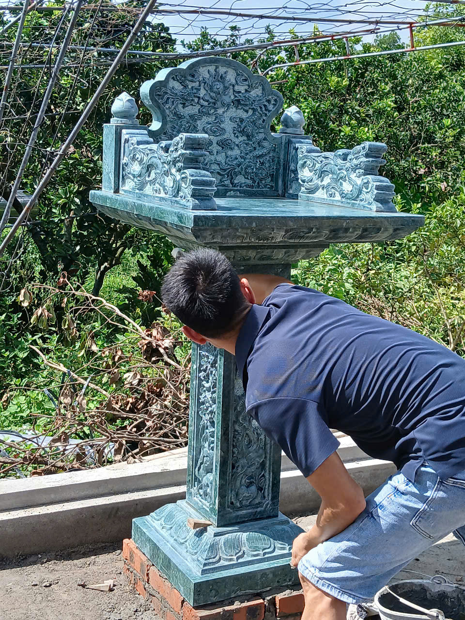 - Loại đá: Đá xanh, đá trắng, đá ngọc, hay đá hoa cương.