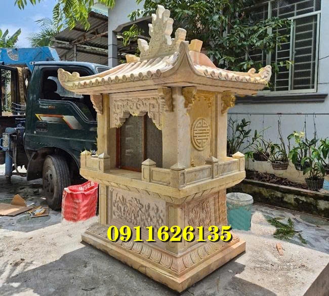 Thiết kế 2 mái hoặc 3 mái ,Hoa văn chạm khắc tinh xảo .Mang đậm nét truyền thống