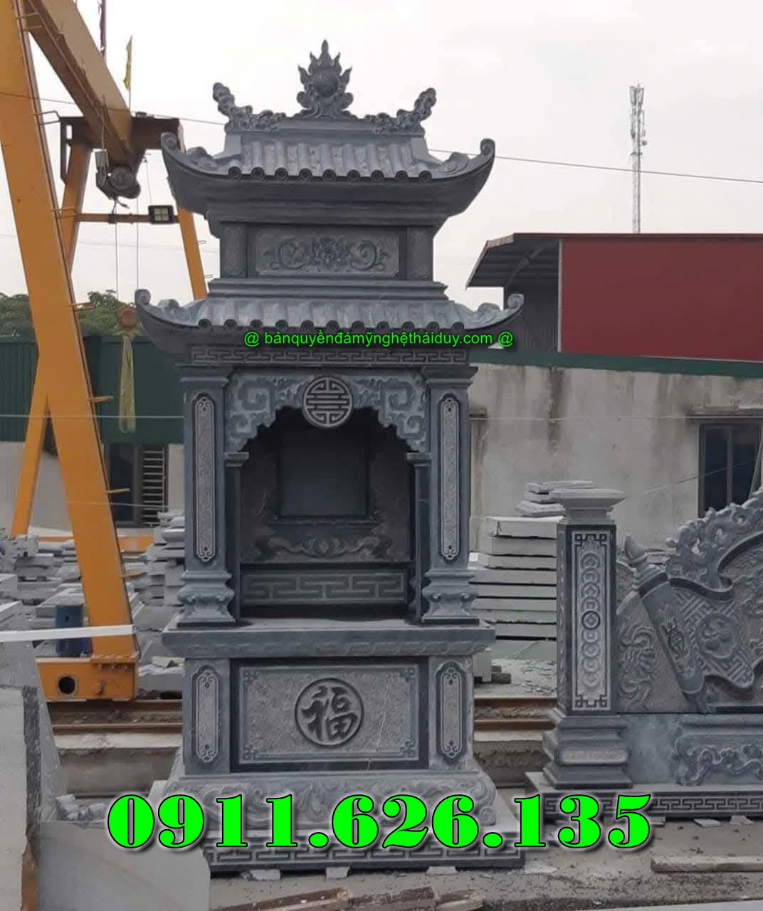 Thiết kế 2 mái hoặc 3 mái ,Hoa văn chạm khắc tinh xảo .Mang đậm nét truyền thống