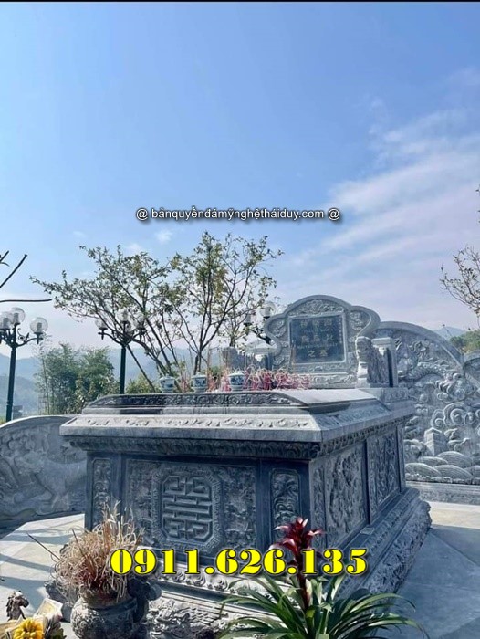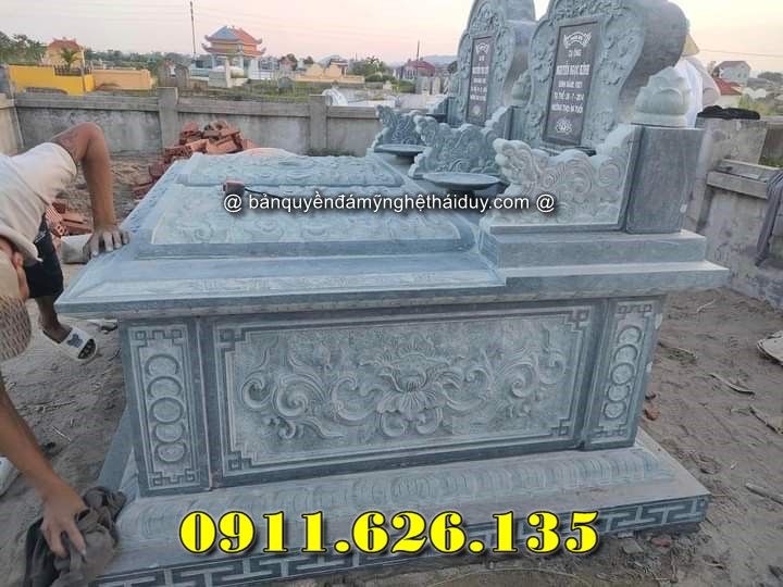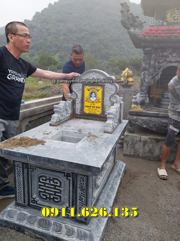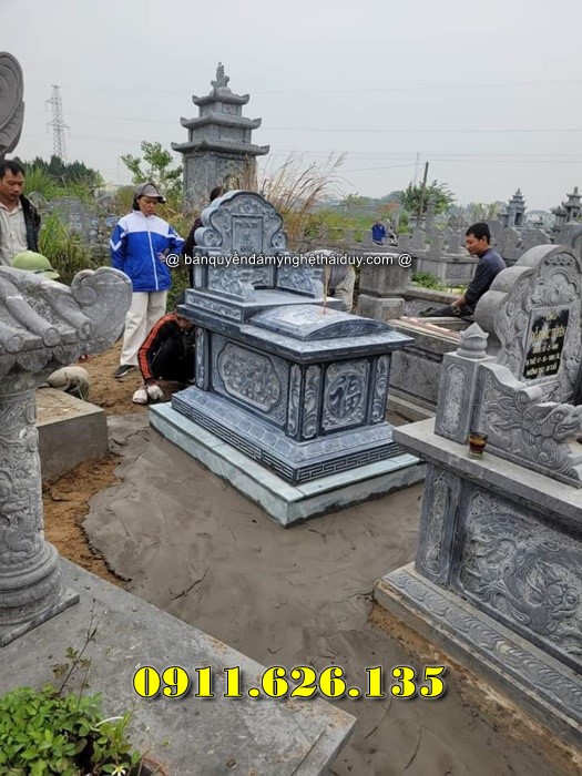 Giá bán Tại Trà Vinh: Tùy thuộc vào chất liệu đá (đá xanh đen, đá trắng, đá hoa cương), giá dao động từ 25 triệu – 50 triệu đồng/mộ.