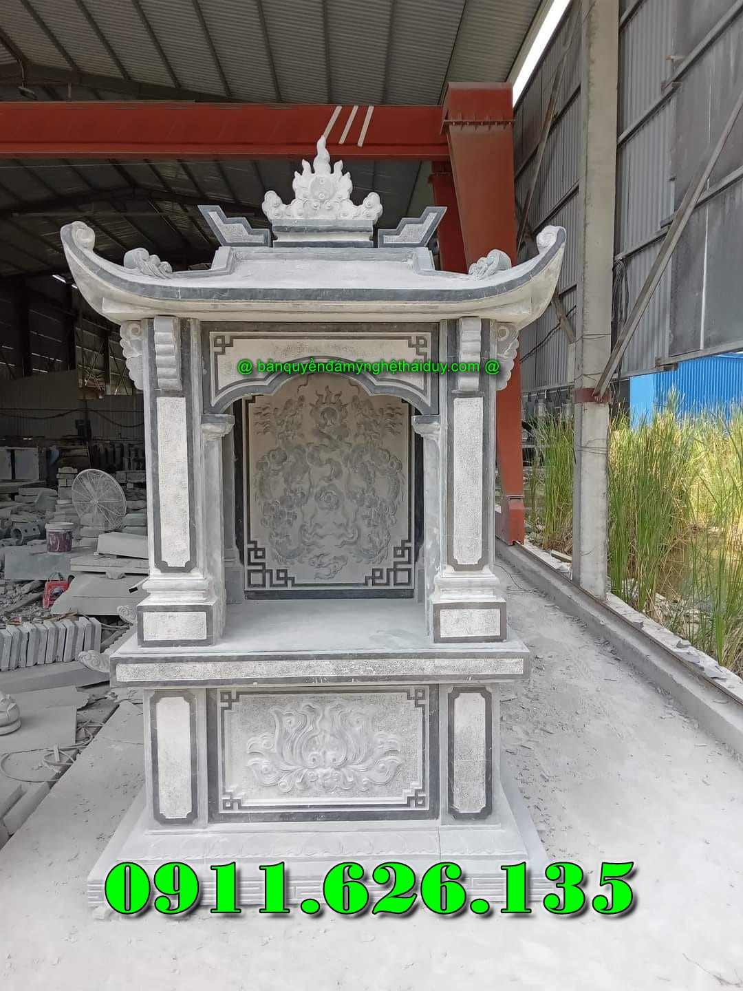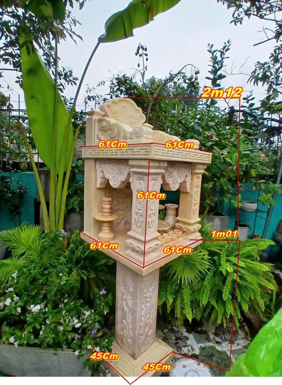 Chất liệu đá tự nhiên giúp bàn thờ bền bỉ, không bị ảnh hưởng bởi mưa nắng, phù hợp với không gian ngoài trời.