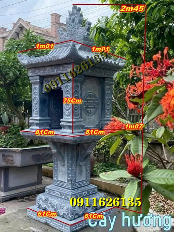 Có thêm phần mái nhỏ giúp bảo vệ bát hương, tăng tính thẩm mỹ.