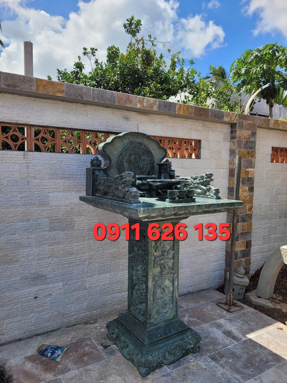Chất liệu đá tự nhiên giúp bàn thờ bền bỉ, không bị ảnh hưởng bởi mưa nắng, phù hợp với không gian ngoài trời.