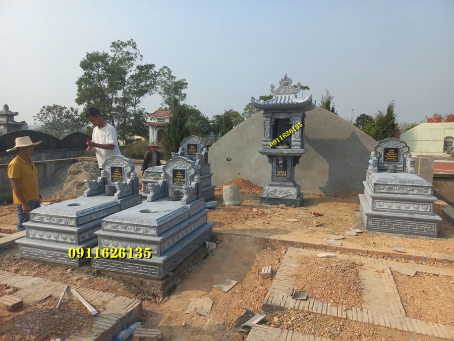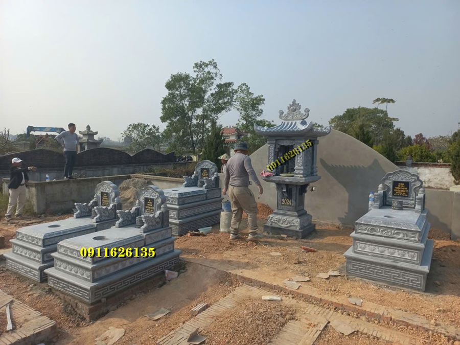 - Lăng mộ đá: Công trình tổng thể với kiến trúc đồng bộ, gồm cổng đá, cuốn thư, lan can, bậc thềm và các phần mộ đá bên trong. Đây là hạng mục thể hiện sự bề thế, hiếu kính và gắn liền với phong tục thờ cúng tổ tiên.