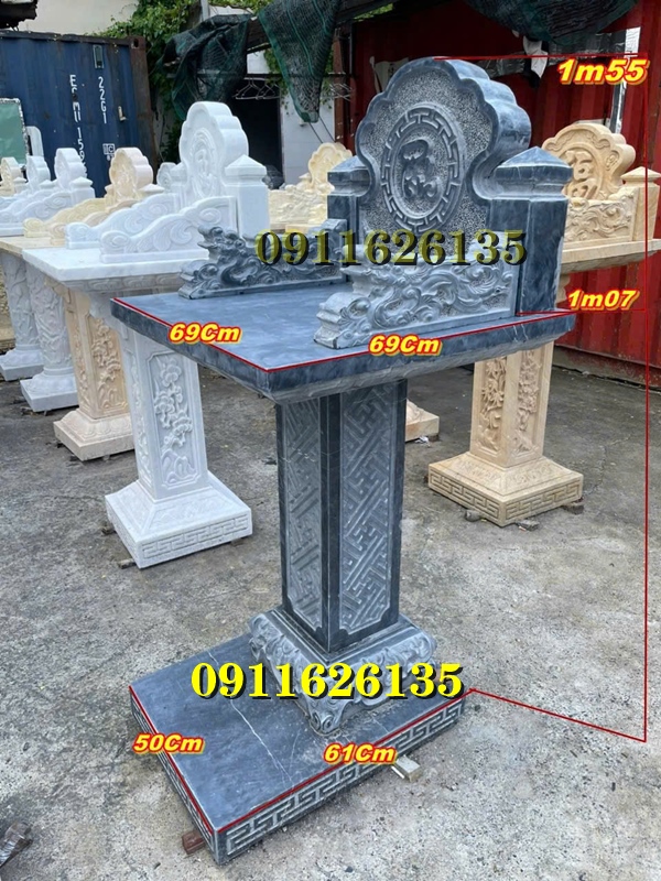 Kích thước thông thường mặt bàn thờ đá 51x51cm, ,61×61 cm ,69x69cm 81×81 cm, 81×97