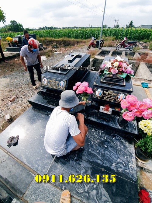 Giá bán Tại Trà Vinh: Tùy thuộc vào chất liệu đá (đá xanh đen, đá trắng, đá hoa cương), giá dao động từ 25 triệu – 50 triệu đồng/mộ.