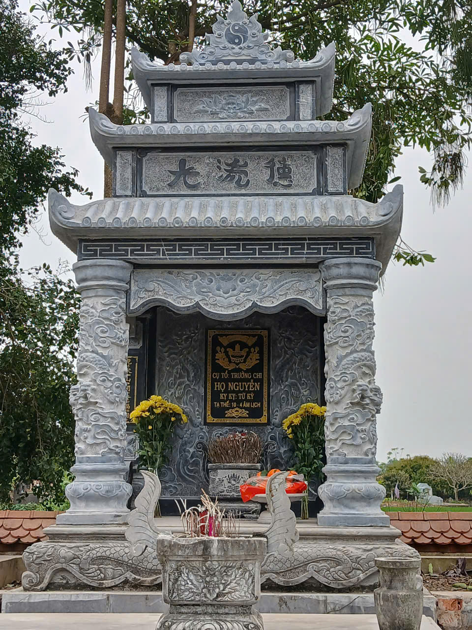 Ngoài ra, thiết kế trang nghiêm giúp khu mộ hài hòa và đúng phong thủy.
