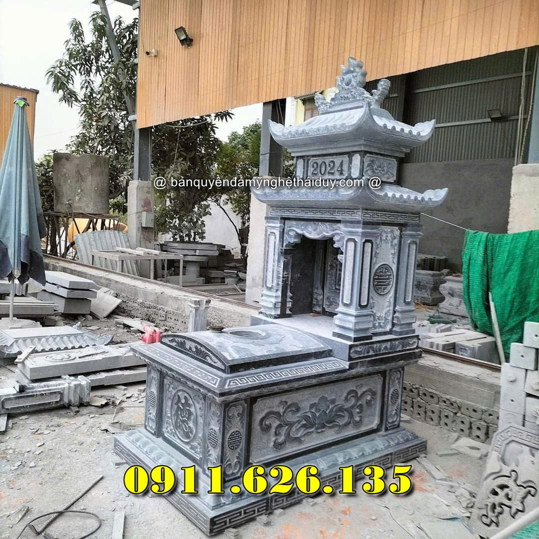 Mộ đá xanh hai mái là kiểu mộ có phần mái được thiết kế chồng hai lớp, tạo cảm giác bề thế và chắc chắn. Phần thân mộ được chế tác từ đá xanh tự nhiên có độ cứng cao.