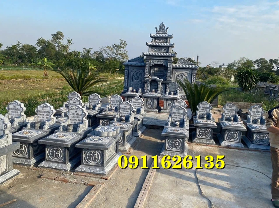 - Lăng mộ đá: Công trình tổng thể với kiến trúc đồng bộ, gồm cổng đá, cuốn thư, lan can, bậc thềm và các phần mộ đá bên trong. Đây là hạng mục thể hiện sự bề thế, hiếu kính và gắn liền với phong tục thờ cúng tổ tiên.