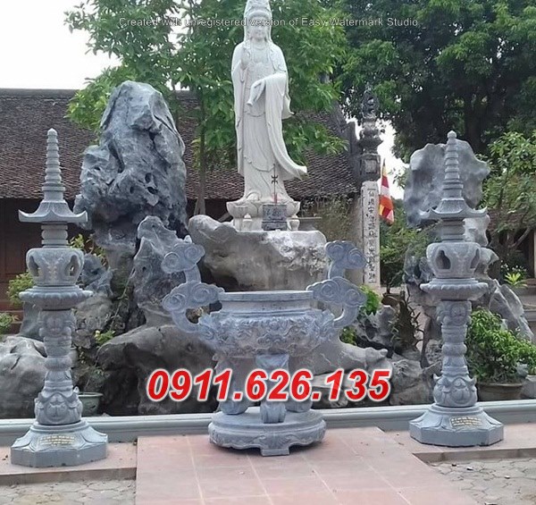 Đèn thờ đá thường đặt trên cột hoặc hai bên bàn thờ.