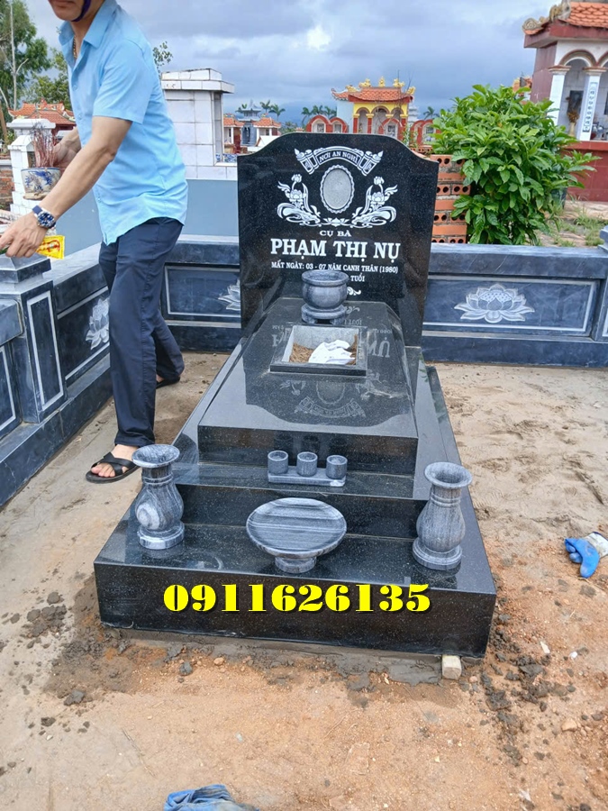 Giá bán Tại Trà Vinh: Tùy thuộc vào chất liệu đá (đá xanh đen, đá trắng, đá hoa cương), giá dao động từ 25 triệu – 50 triệu đồng/mộ.