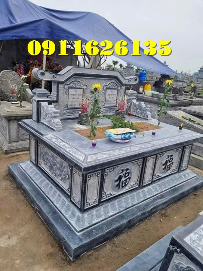 Giá bán Tại Trà Vinh: Tùy thuộc vào chất liệu đá (đá xanh đen, đá trắng, đá hoa cương), giá dao động từ 25 triệu – 50 triệu đồng/mộ.