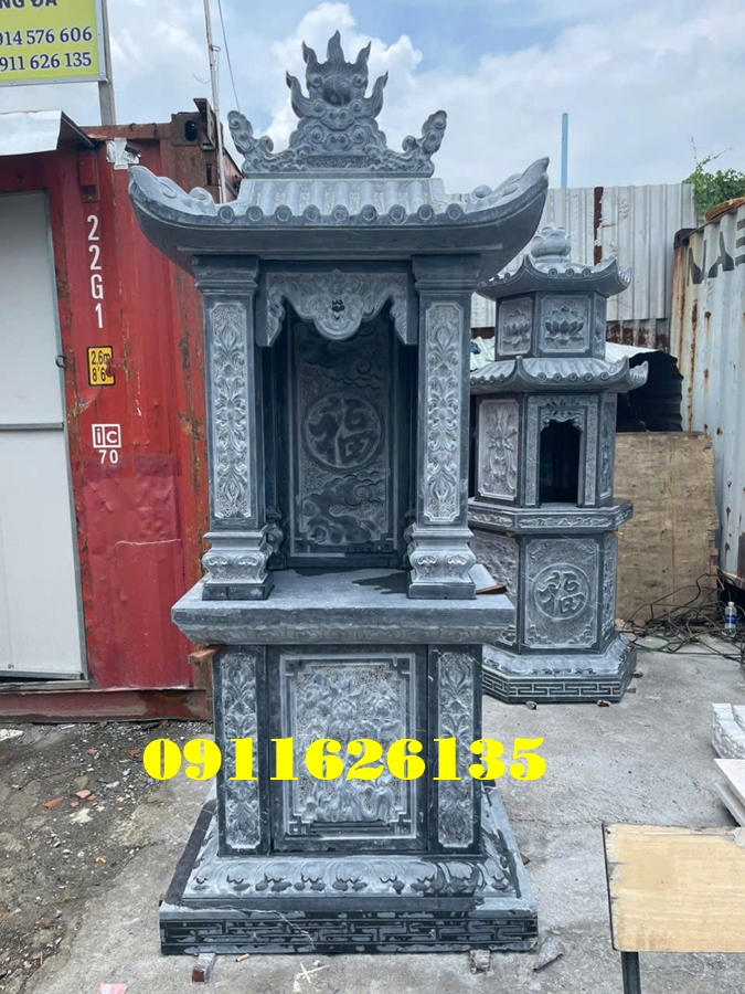 Am thờ tro cốt bằng đá là một công trình kiến trúc tâm linh nhỏ được làm từ đá tự nhiên nguyên khối, dùng để bảo quản, an vị và thờ cúng hũ tro cốt của người đã khuất sau khi hỏa táng, thường đặt tại sân vườn gia đình, khu nghĩa trang, đền chùa hoặc nơi trang nghiêm trong khuôn viên thờ tự. “Am” trong tiếng Việt chỉ ngôi nhà nhỏ để thờ cúng, còn “tro cốt” là phần còn lại sau khi hỏa táng người mất, vì vậy am thờ tro cốt đá vừa là nơi trang trọng để tưởng nhớ, thể hiện lòng hiếu kính, vừa là chốn an nghỉ thanh tịnh cho linh hồn người khuất bóng. Đây không chỉ là biểu tượng của lòng thành kính với tổ tiên và người đã khuất, mà còn mang ý nghĩa phong thủy sâu sắc, giúp cân bằng năng lượng, đem lại sự bình an cho gia đình và thể hiện truyền thống văn hóa “uống nước nhớ nguồn” của người Việt. Các am thờ này thường được thiết kế với nhiều kích thước khác nhau phù hợp nhu cầu và không gian, ví dụ như chiều rộng khoảng 40–100 cm, chiều cao khoảng 80–167 cm và chiều sâu khoảng 40–90 cm tùy theo số lượng hũ tro cốt cần an vị và phong thủy đặt am. Chất liệu đá để làm am thờ tro cốt rất đa dạng với các loại đá tự nhiên như đá xanh rêu Thanh Hóa, đá xanh ngọc Ninh Bình, đá trắng (cẩm thạch), đá vàng, đá granite (hoa cương)… mang độ bền cao, chịu được thời tiết, đồng thời dễ chạm khắc hoa văn. Trên thân am thường có các họa tiết hoa văn mang ý nghĩa tâm linh như hoa sen, rồng phượng, mây trời, chữ Hán “Phúc – Thọ – Tâm” hay hình tượng Phật, Bồ Tát, tạo nên vẻ trang nghiêm và truyền cảm giá trị văn hóa sâu sắc nhất cho không gian thờ cúng. Giá của một am thờ tro cốt bằng đá tùy thuộc vào kích thước, chất liệu và độ tinh xảo của hoa văn chạm khắc, thường dao động từ vài chục triệu đồng đến hơn một trăm triệu đồng cho các mẫu lớn và cầu kỳ.