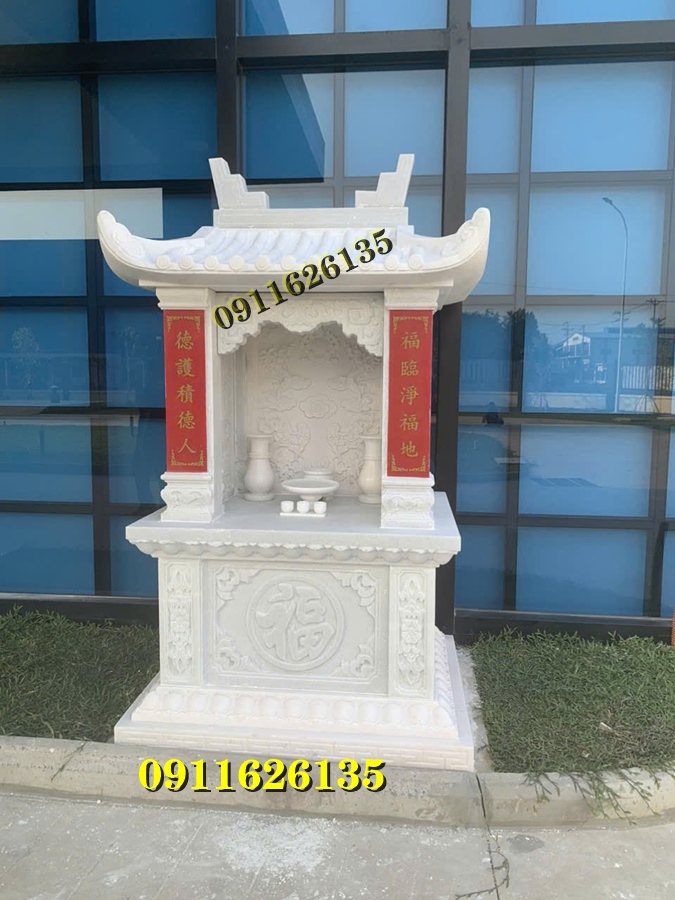 Am thờ tro cốt bằng đá là một công trình kiến trúc tâm linh nhỏ được làm từ đá tự nhiên nguyên khối, dùng để bảo quản, an vị và thờ cúng hũ tro cốt của người đã khuất sau khi hỏa táng, thường đặt tại sân vườn gia đình, khu nghĩa trang, đền chùa hoặc nơi trang nghiêm trong khuôn viên thờ tự. “Am” trong tiếng Việt chỉ ngôi nhà nhỏ để thờ cúng, còn “tro cốt” là phần còn lại sau khi hỏa táng người mất, vì vậy am thờ tro cốt đá vừa là nơi trang trọng để tưởng nhớ, thể hiện lòng hiếu kính, vừa là chốn an nghỉ thanh tịnh cho linh hồn người khuất bóng. Đây không chỉ là biểu tượng của lòng thành kính với tổ tiên và người đã khuất, mà còn mang ý nghĩa phong thủy sâu sắc, giúp cân bằng năng lượng, đem lại sự bình an cho gia đình và thể hiện truyền thống văn hóa “uống nước nhớ nguồn” của người Việt. Các am thờ này thường được thiết kế với nhiều kích thước khác nhau phù hợp nhu cầu và không gian, ví dụ như chiều rộng khoảng 40–100 cm, chiều cao khoảng 80–167 cm và chiều sâu khoảng 40–90 cm tùy theo số lượng hũ tro cốt cần an vị và phong thủy đặt am. Chất liệu đá để làm am thờ tro cốt rất đa dạng với các loại đá tự nhiên như đá xanh rêu Thanh Hóa, đá xanh ngọc Ninh Bình, đá trắng (cẩm thạch), đá vàng, đá granite (hoa cương)… mang độ bền cao, chịu được thời tiết, đồng thời dễ chạm khắc hoa văn. Trên thân am thường có các họa tiết hoa văn mang ý nghĩa tâm linh như hoa sen, rồng phượng, mây trời, chữ Hán “Phúc – Thọ – Tâm” hay hình tượng Phật, Bồ Tát, tạo nên vẻ trang nghiêm và truyền cảm giá trị văn hóa sâu sắc nhất cho không gian thờ cúng. Giá của một am thờ tro cốt bằng đá tùy thuộc vào kích thước, chất liệu và độ tinh xảo của hoa văn chạm khắc, thường dao động từ vài chục triệu đồng đến hơn một trăm triệu đồng cho các mẫu lớn và cầu kỳ.