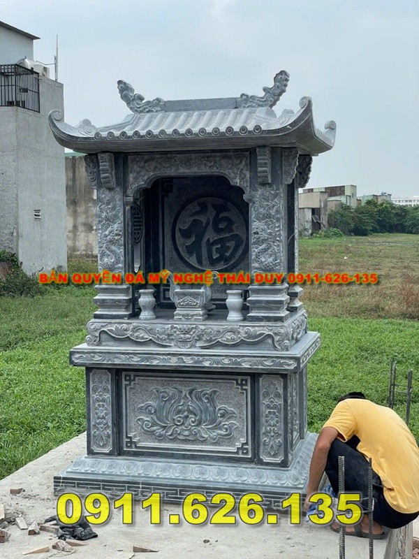 Miếu đá thờ ,am thờ là công trình tâm linh mang đậm bản sắc văn hóa Việt Nam, được xây dựng để làm nơi thờ tự các vị thần linh, Thành Hoàng làng, Thổ Công, Thổ Địa, Thần Nông, các bậc tiền nhân có công khai khẩn đất đai, lập làng lập ấp, đồng thời cũng là chốn linh thiêng để con cháu và người dân trong vùng dâng hương cầu bình an, sức khỏe, mùa màng bội thu và cuộc sống ấm no hạnh phúc. Một ngôi miếu đá được thiết kế và chế tác tinh xảo không chỉ mang giá trị tâm linh sâu sắc mà còn khẳng định sự bền vững, uy nghi của công trình, là biểu tượng trường tồn cùng thời gian. Miếu đá thường được làm từ nhiều loại đá tự nhiên cao cấp như đá vàng sang trọng, đá xanh truyền thống, đá đen huyền bí hay đá Ấn Độ với độ cứng chắc và độ bóng cao, mỗi loại đá đều mang vẻ đẹp và ý nghĩa phong thủy riêng, phù hợp với từng không gian và mong muốn của gia chủ hoặc cộng đồng. Kích thước miếu đá đa dạng, từ nhỏ gọn cao khoảng 81cm – 127cm thường dùng cho gia đình, đến các mẫu lớn trên 2m dành cho đình làng, miếu thờ thần linh hay khu thờ tự cộng đồng, tất cả đều được chế tác chuẩn phong thủy theo thước Lỗ Ban, đảm bảo sự cân đối và hài hòa trong không gian thờ tự. Giá một ngôi miếu đá phụ thuộc vào chất liệu, kích thước và mức độ chạm khắc, trung bình dao động từ 15.000.000 đồng đến trên 80.000.000 đồng, các mẫu lớn bằng đá Ấn Độ hoặc đá vàng nguyên khối có thể lên đến vài trăm triệu đồng, xứng đáng là công trình bền vững, trường tồn với thời gian. Tại làng nghề điêu khắc đá truyền thống Ninh Vân, Hoa Lư, Ninh Bình, chúng tôi chuyên chế tác các mẫu miếu đá thờ đa dạng mẫu mã, tinh xảo, bền đẹp, thi công trọn gói từ tư vấn thiết kế đến lắp đặt hoàn thiện trên toàn quốc, đảm bảo chất lượng cao và giá thành hợp lý, quý khách có nhu cầu xin vui lòng liên hệ số điện thoại 0911.626.135 để được tư vấn chi tiết và đặt hàng. Kích thước mộ đá chuẩn phong thủy (thước Lỗ Ban)