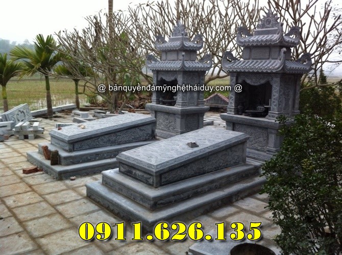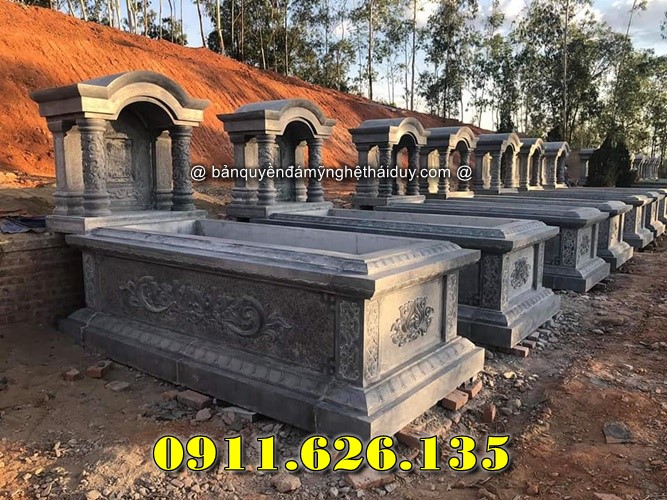 mộ làm từ đá xanh tự nhiên khai thác từ Ninh Bình Thanh Hóa với độ bền cao màu sắc trang nghiêm và chạm khắc sắc nét