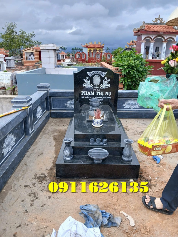 Giá bán Tại Trà Vinh: Tùy thuộc vào chất liệu đá (đá xanh đen, đá trắng, đá hoa cương), giá dao động từ 25 triệu – 50 triệu đồng/mộ.